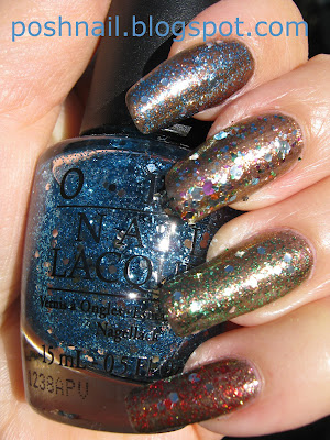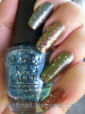 I have a lot of older photos that I would like to show you. First, I would like to finish the OPI Muppets Collection and show you how wonderful the glitters are layered over the foils.