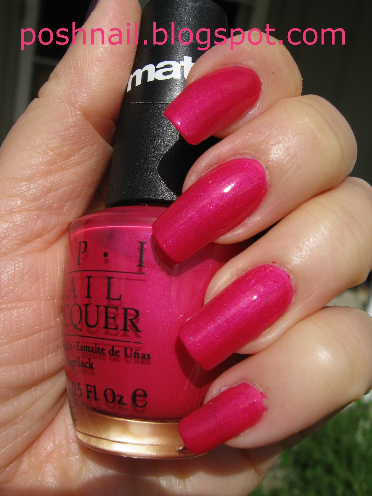 Last time, I showed you my right hand. Today, I am going to show you, as usual, my left hand. It's harder to grow my nails on my right hand than on my left, so I always try to swatch on my left hand because my nails are longer.I used OPI La Paz-itively Hot Matte and China glaze Nova.